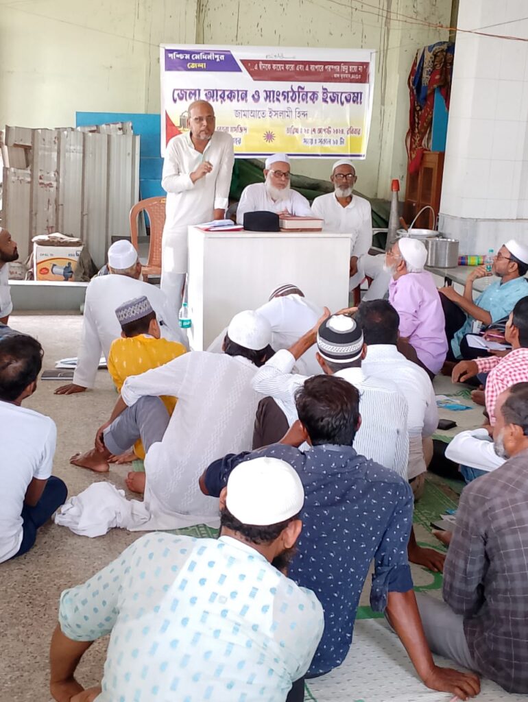 মীযান ডেস্ক: পশ্চিম মেদিনীপুরে অনুষ্ঠিত হল জেলা আরকান ও সাংগঠনিক ইজতেমা। গত রবিবার ২৫ আগস্ট মেদিনীপুর শহর বেতরা জামে মসজিদে এই প্রোগ্রামে জেলার সকল আরকান, কারকুন ও রুকনগণ উপস্থিত ছিলেন। চিরাচরিত প্রথা অনুযায়ী প্রথম অধিবেশন শুরু হয় দারসে কুরআন পেশের মাধ্যমে। দারসে কুরআন পেশ করেন জামাআতে ইসলামী হিন্দের বিভাগীয় রাজ্য সেক্রেটারি মাওলানা তাহেরুল হক সাহেব। জেলার সাংগঠনিক রিপোর্ট ও ২০২৩-২৪ সালের বাৎসরিক আয়-ব্যয়ের হিসাব পেশ এবং ২০২৪-২৫ সালের পরিকল্পনা পেশ করেন জেলা নাযিম মহ: সাইফুদ্দিন মণ্ডল। পর্যালোচনা করেন বিভাগীয় রাজ্য সেক্রেটারি আব্দুর রহিম। জামাআত আপনার কাছে কী চায় – এই বিষয়ের উপর খুবই সুন্দরভাবে বক্তব্য পেশ করেন আব্দুর রহিম সাহেব।